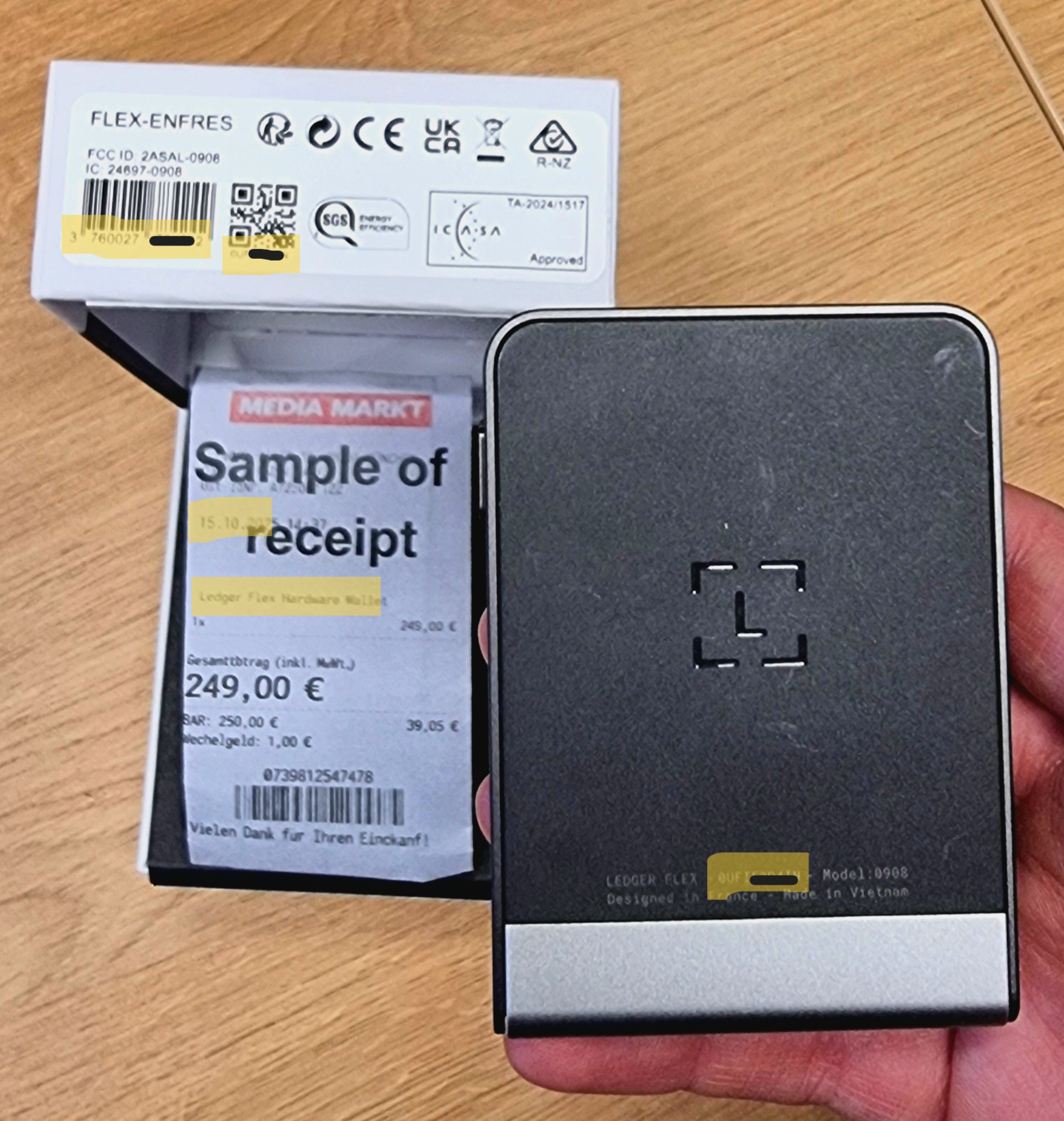 - The receipt of payment highlighting the purchase date, the retailer and the product purchased